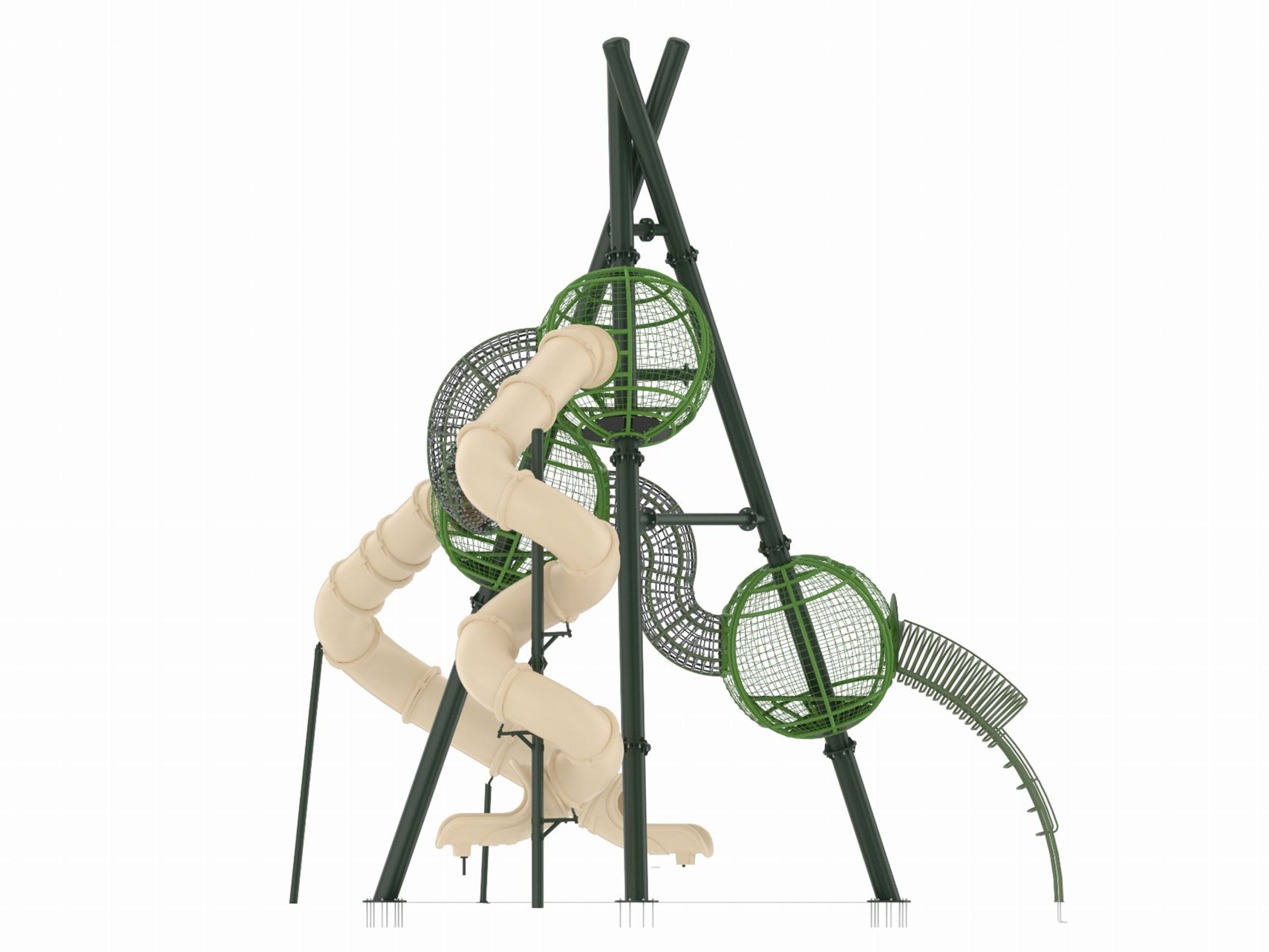 Bouncing Battlement is an invigorating playground structure composed of interconnected spheres built from a sturdy wire mesh system. Each sphere, differing in height and placement, creates unlimited opportunities for children to dive into imaginative play, navigating through multilevel tunnel slides.