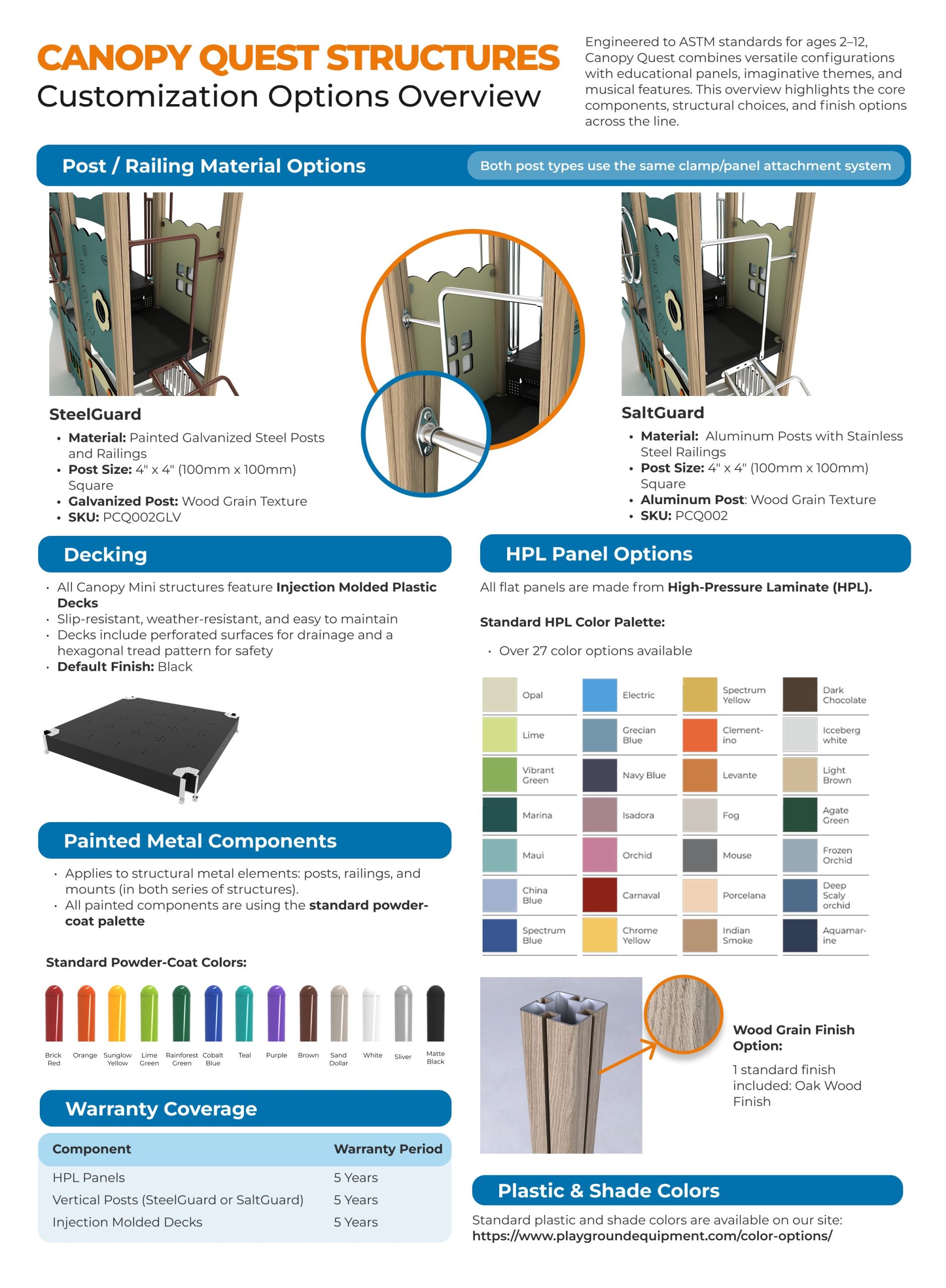You can choose between two fantastic options: the SteelGuard and SaltGuard. The SteelGuard Canopy Minis combine sturdy galvanized steel posts with a stylish wood grain finish, ensuring both durability and elegance. On the other hand, SaltGuard versions are made of stainless steel and aluminum, providing exceptional corrosion resistance—perfect for coastal locations or harsh climates.