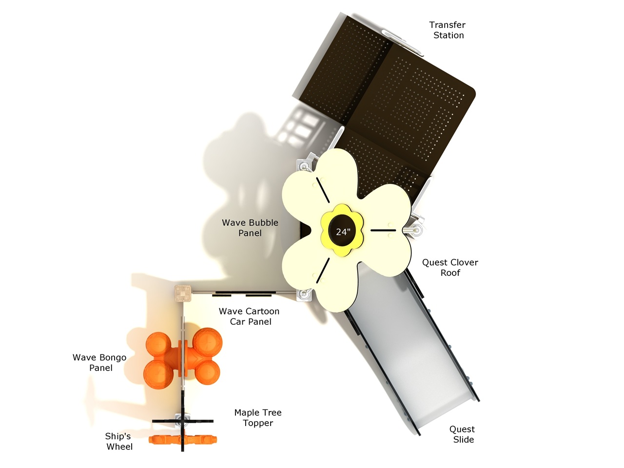 The Columbian Spruce Canopy Quest features a delightful clover-shaped roof that not only provides ample shade but also adds a charming touch to the playground. Children can slide down with glee, engage in imaginative adventures at the steering wheel, or create beautiful rhythms on the drums. The Columbian Spruce isn’t just a playhouse; it’s a dynamic hub for creativity and movement, catering to kids of all abilities. This fantastic play structure promotes sensory and social growth while boasting a versatile, compact design—making it a perfect centerpiece for inclusive outdoor environments for young children.