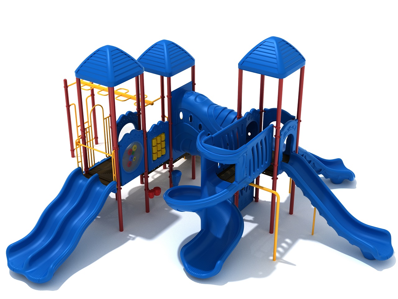 Electric City is a vibrant playground structure featuring five slides for endless fun and friendly races. Climbing elements like the Figure and Overhead Snake Climbers challenge strength and coordination, while the Funnel Tube Bridge serves as a lookout, secret passage, or social hub.