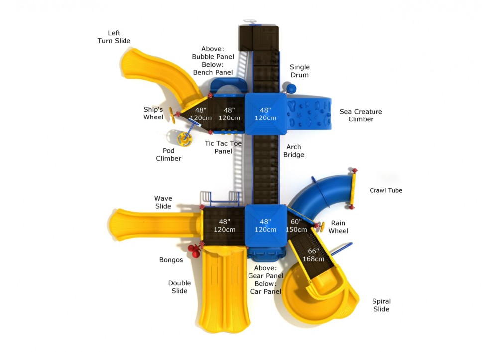 The Honolulu play system is a paradise of awesome slides and activities. This structure has virtually every type of slide that we have to offer for play systems, including a Wave Slide, Double Slide, Right Turn Slide, and Spiral Slide. These provide plenty of different styles and heights of slides, so that children can choose the one that is perfectly suited to their preferences (although they will want to try them all, of course!).